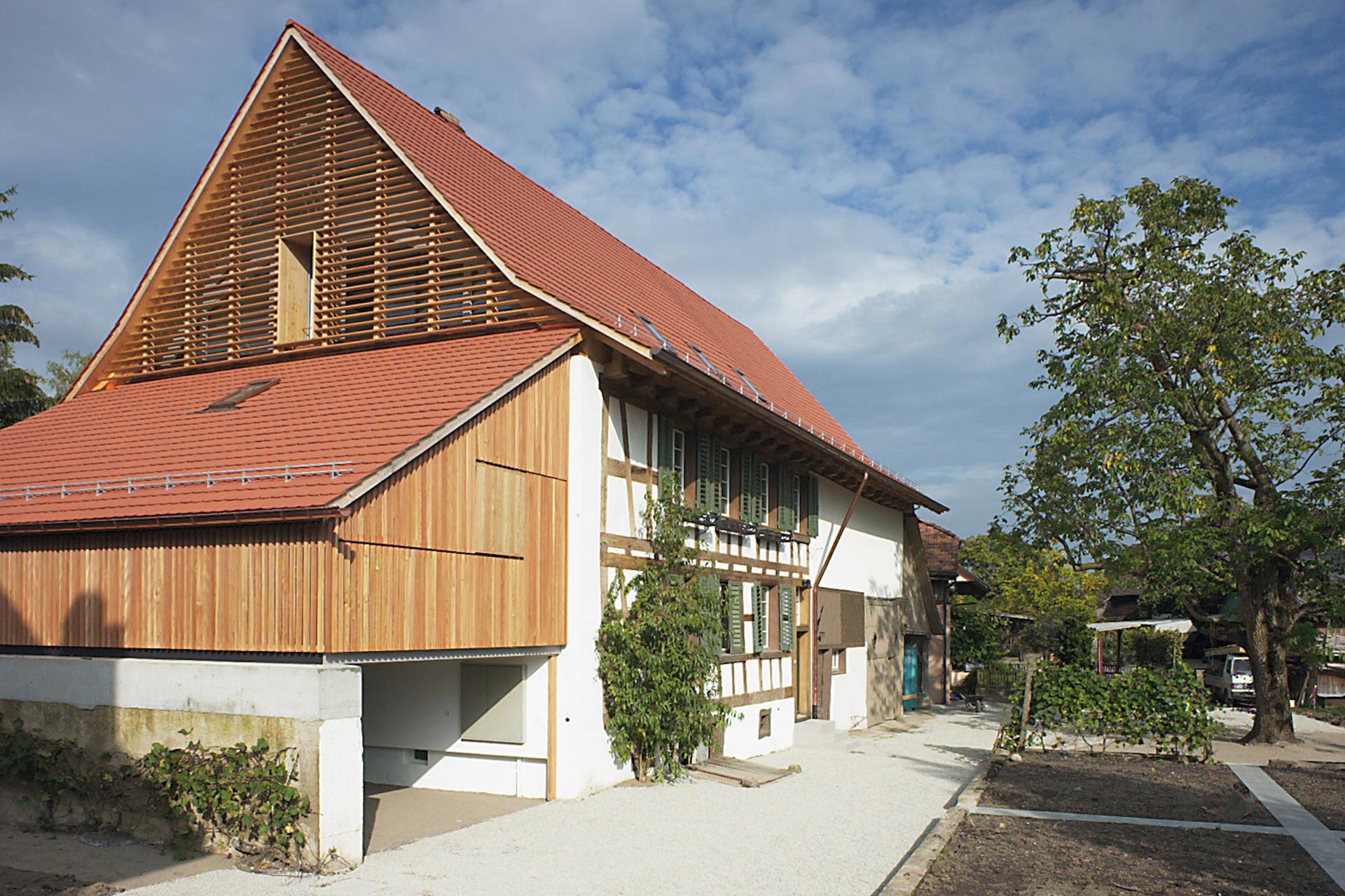 Die Erstellung des ehemaligen Bauernhauses geht auf das Jahr 1831 zurück. Es ist ein klassizistisches Vielzweckbauernhaus mit westlichem Wohnteil und östlicher Ökonomiebaute unter durchgehendem First. Ein eingezäunter Bauerngarten mit Schatten spendendem Nussbaum vervollständigt das Bild. Im Laufe der Nutzzeit wurden in additiver Form Anbauten an das Hauptvolumen angefügt. Trotz einiger baulicher Veränderungen im Innern, die Letzten in den Jahren 1987 und 1994, ist die originale Raumaufteilung erhalten. Die Umbaumassnahmen erfolgen sanft und sehen den Erhalt der Struktur des bestehenden Wohnteils vor. Die Neubauelemente werden mit möglichst wenigen Berührungspunkten in die vorhandenen Bauteile einfügt. Bestehende Oberflächen werden örtlich repariert und gereinigt sowie je nach Lage mit materialgerechter Behandlung erneuert. Der Dachraum wird zum Büro- und Gästeraum mit eigener Nasszelle ausgebaut. Das dafür nötige natürliche Licht liefert ein ganz verglastes Giebelfeld auf der Westseite. Die horizontalen Lärchenholzlamellen sind der Fensterfläche vorgelagert und reproduzieren den homogenen, schmucklosen Eindruck der ursprünglichen Giebelfassade. Der bestehende Anbau auf der Westseite des Gebäudes wird als Rekonstruktion neu aufgebaut. Die vertikale Holzlattenverkleidung erinnert an den ursprünglichen licht- und luftdurchlässigen Schuppen.Die Neubauteile, insbesondere Böden und Wände, werden zurückhaltend bezüglich Material- und Farbwahl so bestimmt, dass Alt und Neu als gleichwertige Teile ein Ganzes bilden. Mit gezielten räumlichen Massnahmen werden neue Durchblicke, Lichtverhältnisse und Raumproportionen geschaffen, damit der bestehende Raum grosszügiger wahrgenommen wird.